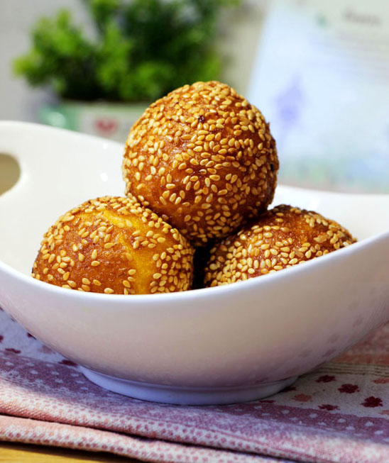 2. CHINESE SESAME BALLS: This is a common breakfast dish in Guangdong and beyond. The vendors use sticky rice and sesame seeds coating. You may choose to use fillings of meat, bean paste or not use any fillings. The outer skin should be crispy regardless of whether it is filled or not.